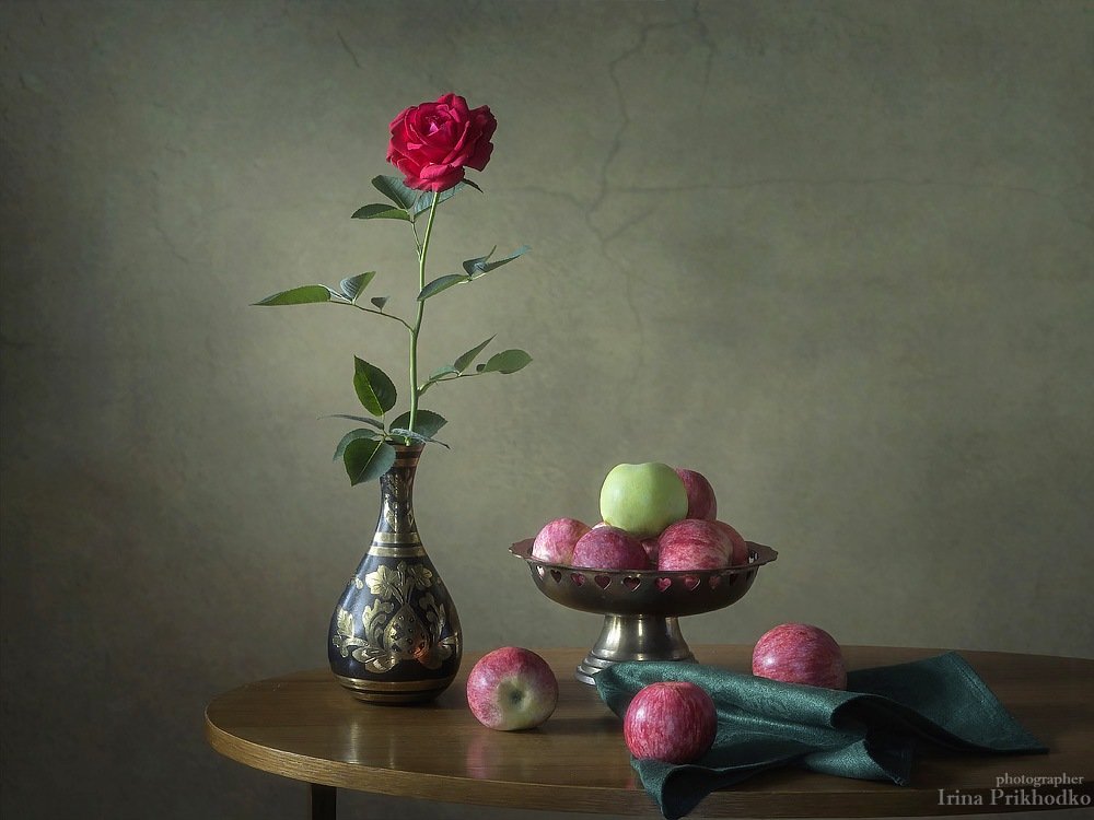 натюрморт, винтажный, фрукты, яблоки, роза, Ирина Приходько