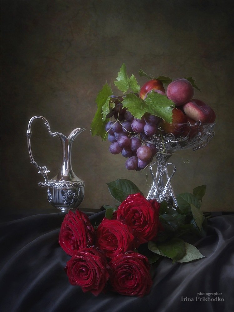 натюрморт, винтажный, ретро, розы, ваза, фрукты, Ирина Приходько