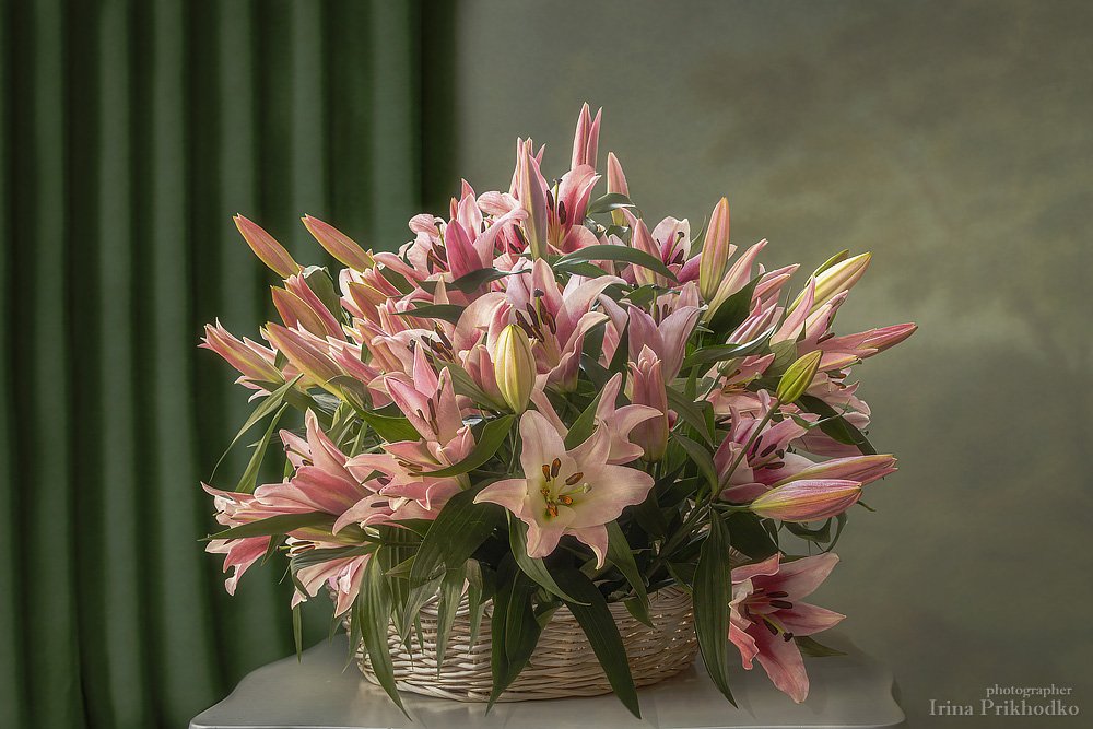 натюрморт, лилии, букет, корзина, ретро, винтаж, Ирина Приходько