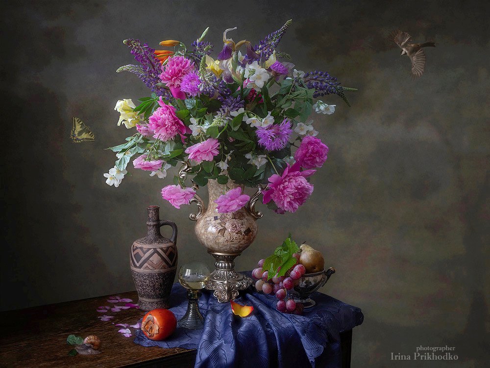 натюрморт, художественное фото, стиль барокко, букет, вино, фрукты, живая природа, , Ирина Приходько