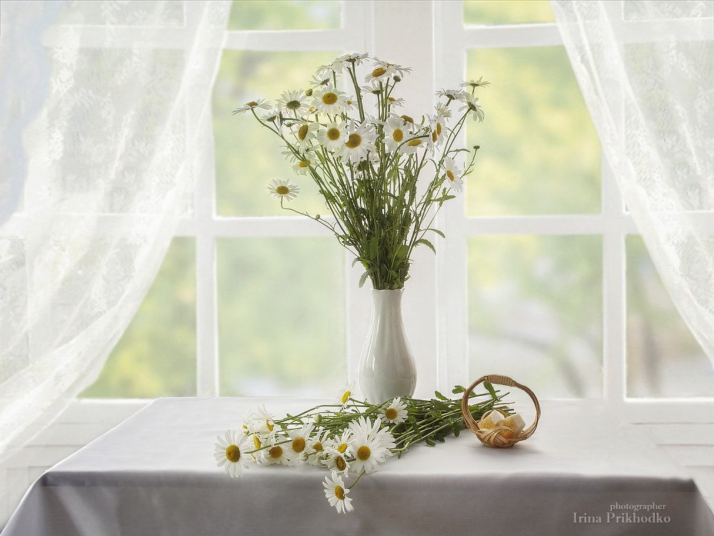 натюрморт, лето, букеты, цветы, ромашки, интерьер, окно, ретро, Ирина Приходько