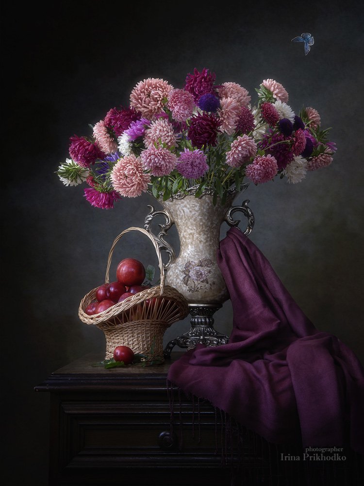 натюрморт, лето, художественная фотография, фрукты, цветы, букет, астры, Ирина Приходько