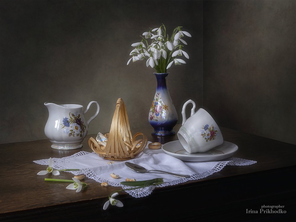 натюрморт, весна, подснежники, чайная сервировка, Ирина Приходько