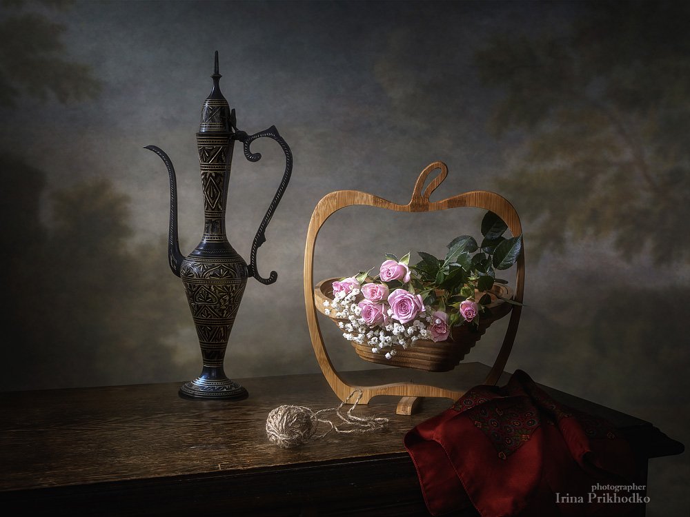 натюрморт, винтажный, ретро, цветы, кувшин, клубок, шпагат, Ирина Приходько