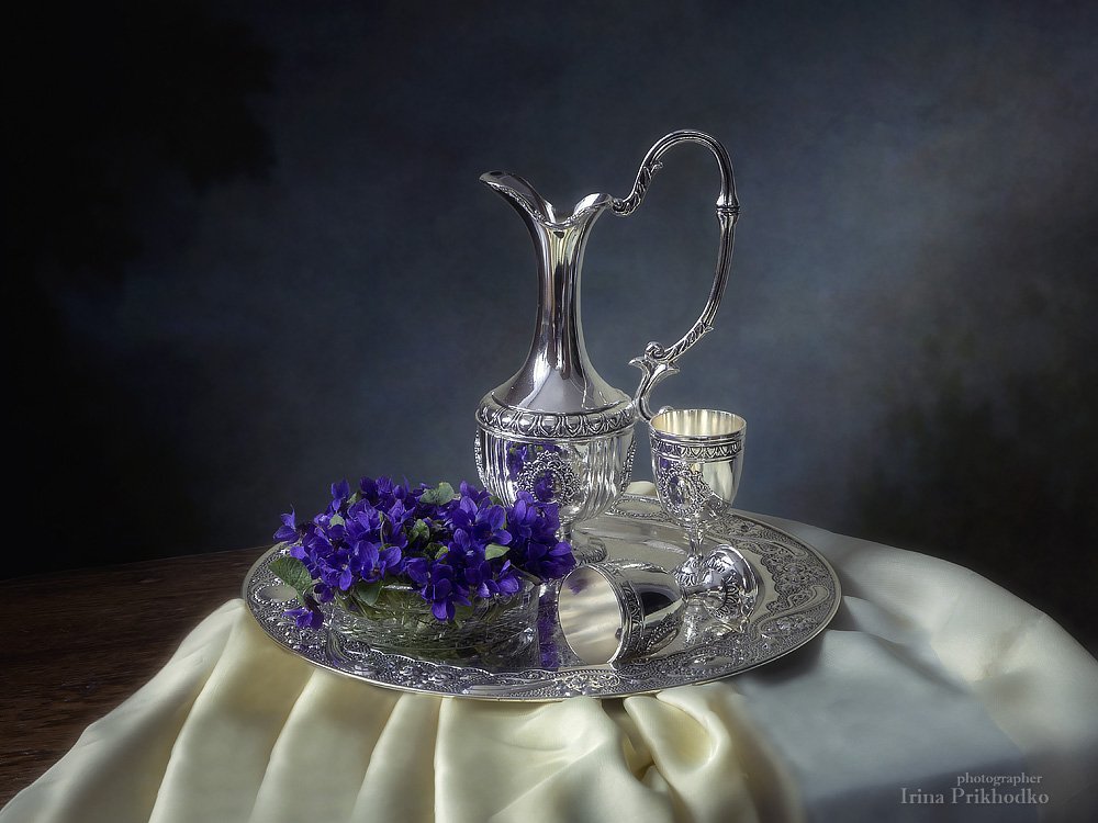 натюрморт, весенние цветы, фиалки, винтажный, ретро, Ирина Приходько