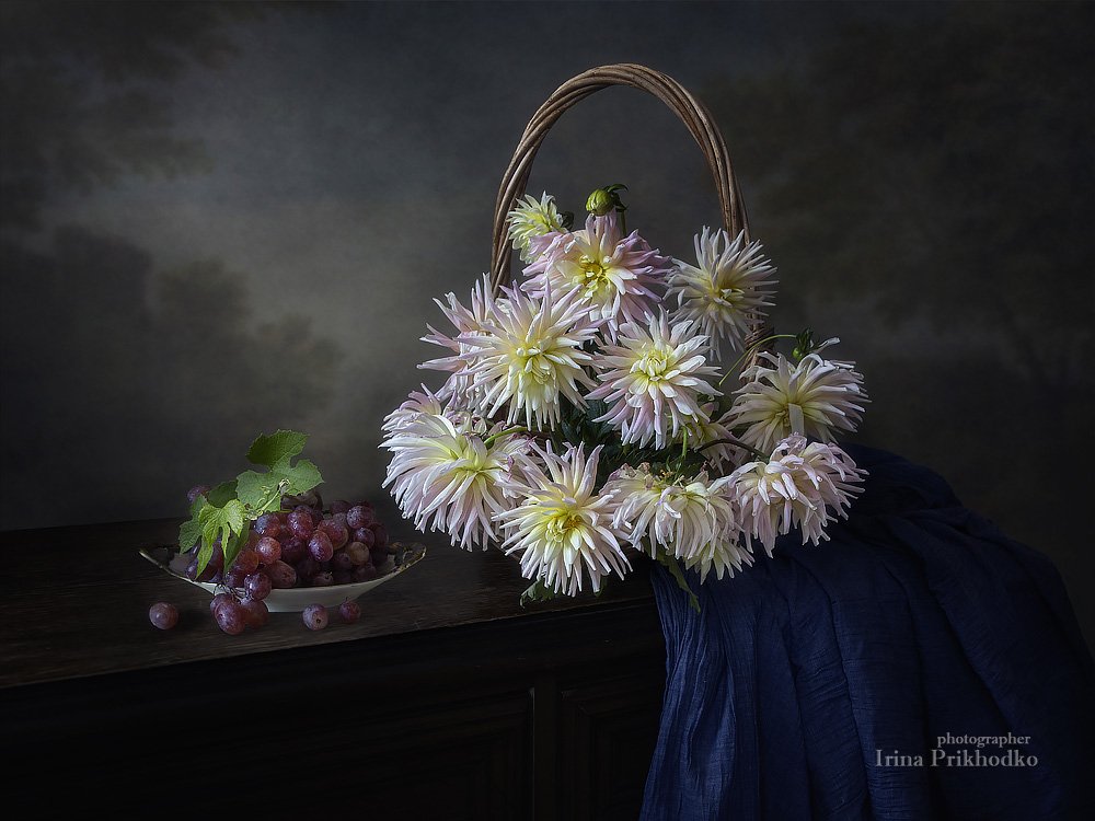 натюрморт, цветочный, винтажный, художественная фотография, фотокартина, георгины, виноград, Ирина Приходько