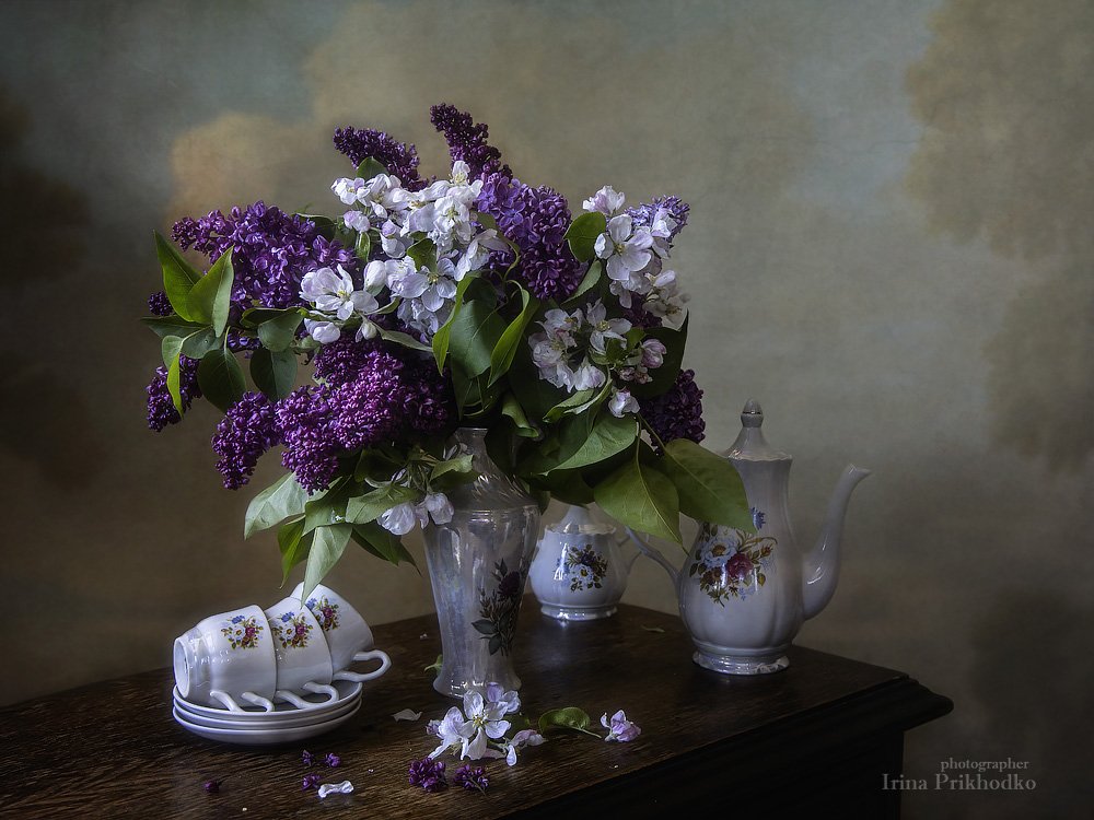 натюрморт, цветочный, ретро, винтажный. букет, сирень, яблоневый цвет, Ирина Приходько