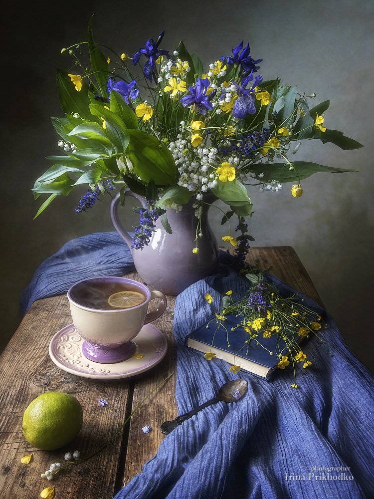 натюрморт, цветочный, винтажный, ретро, букет, лесные цветы, чай, Ирина Приходько