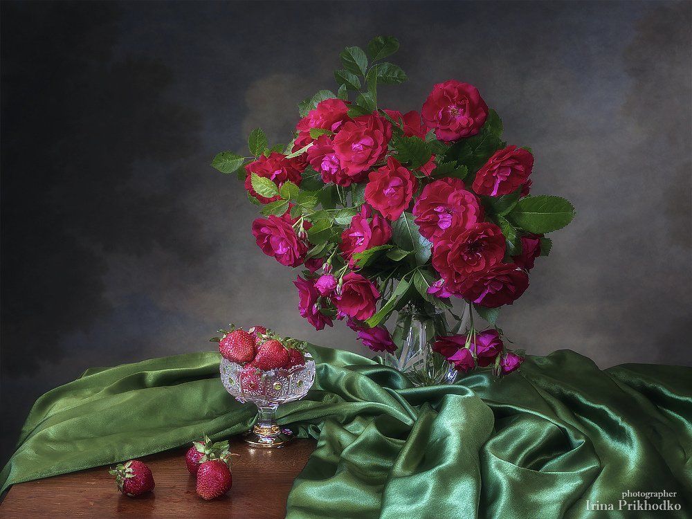 натюрморт, винтажный, цветочный, художественное фото, букет, клубника, розы, Ирина Приходько