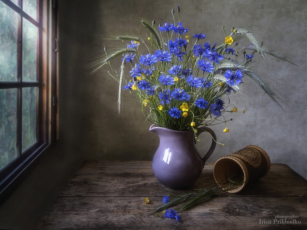 А окно я бы отрезал. Спорит с васильками.