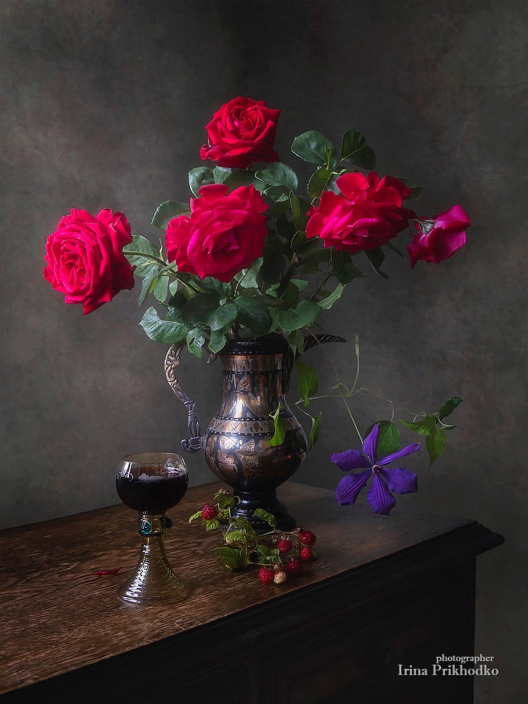 натюрморт, цветочный, винтажный, лето, розы, антикварный бокал, художественная фотография, Ирина Приходько