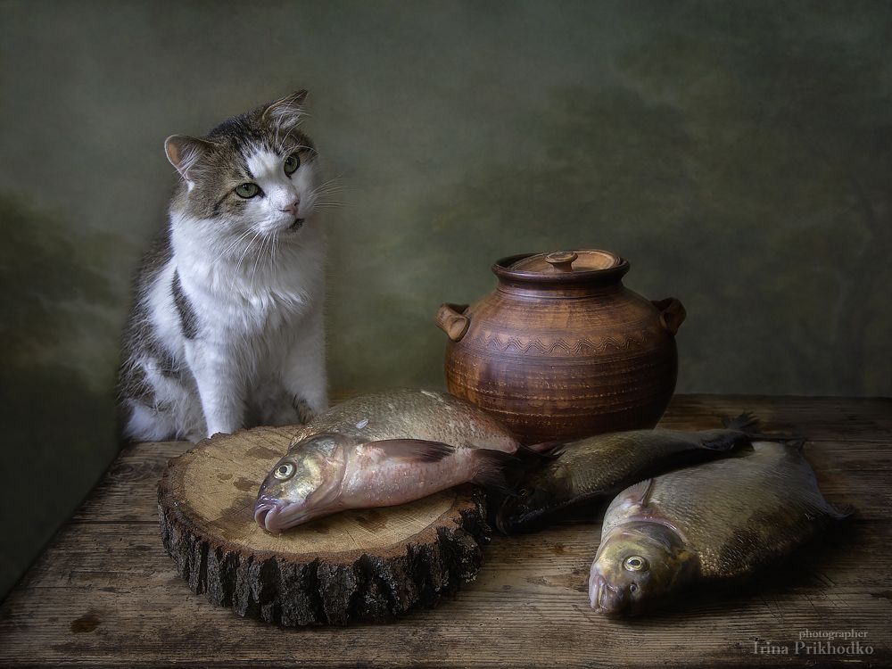 домашние животныекот Лёванатюрмортпостановочное фоторыблещ