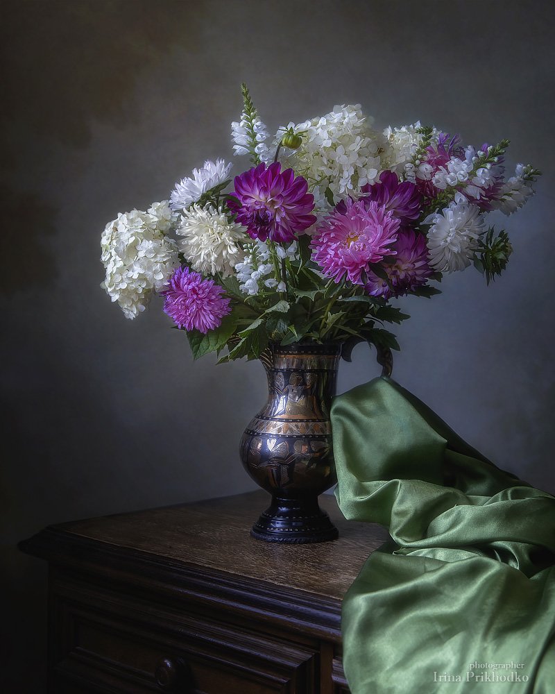 Натюрморт, лето, цветы, садовые, букет, медный кувшин, винтажный, Ирина Приходько
