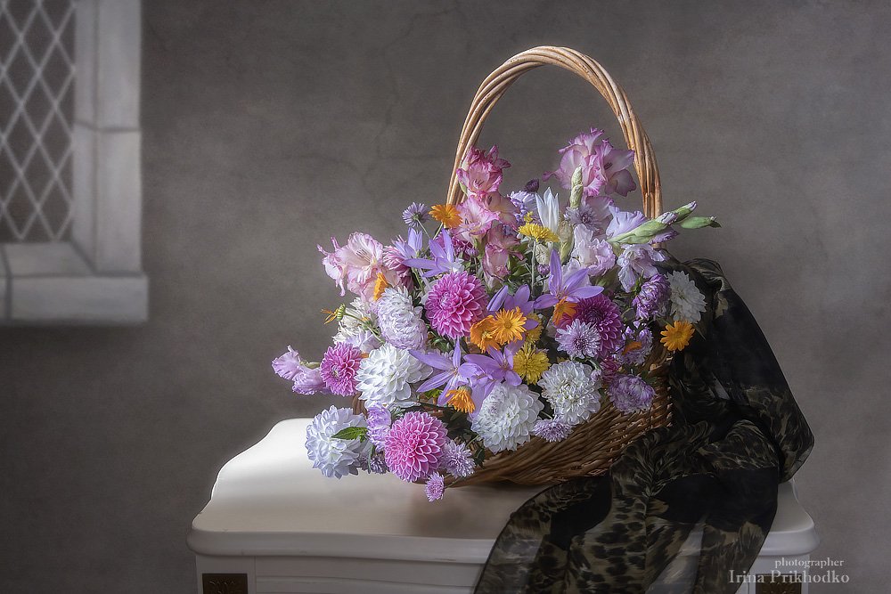 натюрморт, цветочный, винтажный, корзина, флористика, букет, садовые цветы, Ирина Приходько