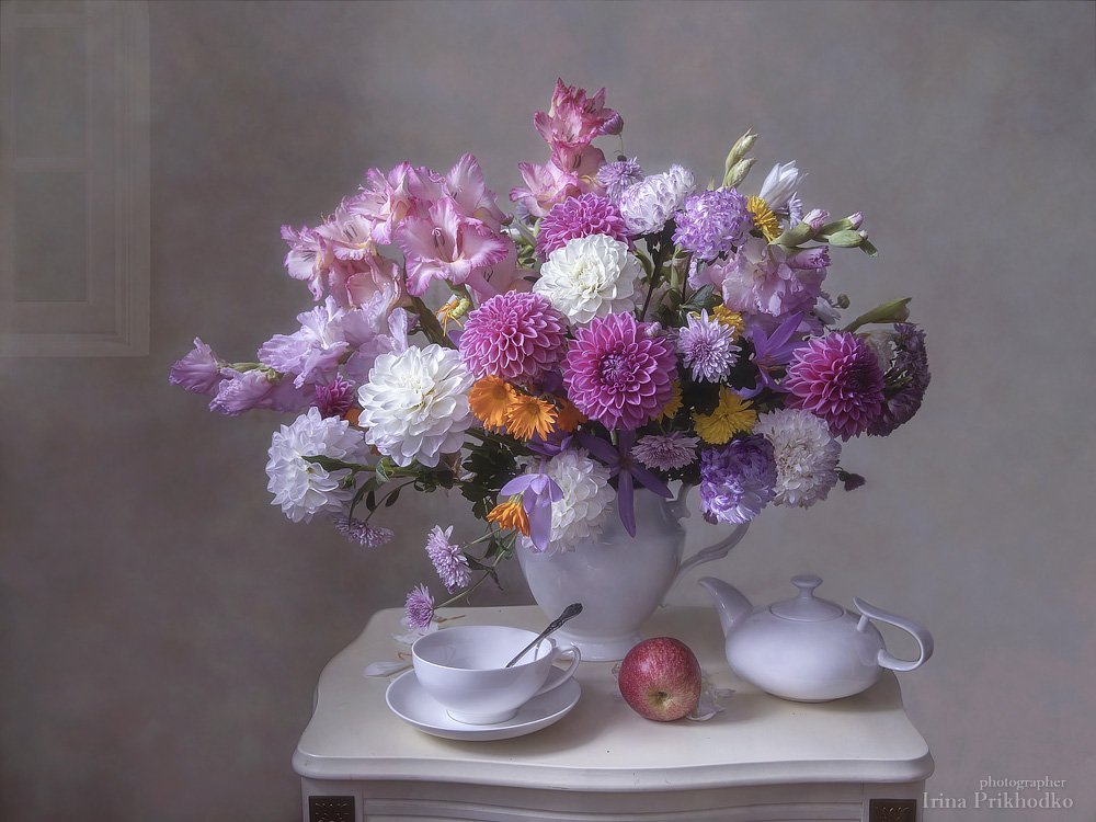натюрморт, настроение, букет, цветы, осень, чайный столик, английский фарфор, Ирина Приходько
