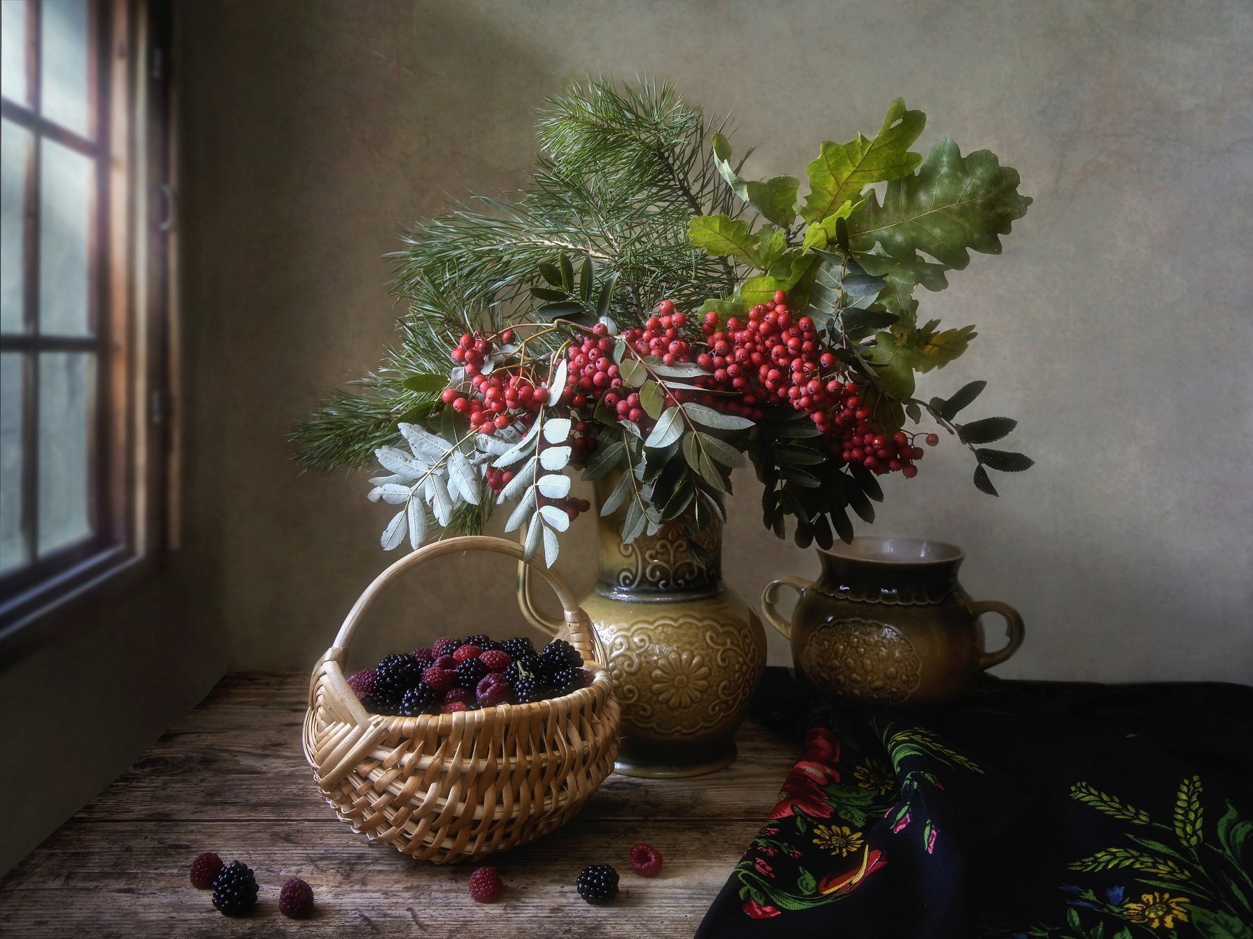 натюрморт, осень, букет, ягоды, осенняя малина, рябина, букет, настроение, Ирина Приходько