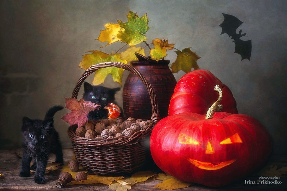 натюрморт, зоонатюрморт, котонатюрморт, котята, хэллоуин, постановочное фото, осень, тыквы, джек-фонарь, Ирина Приходько