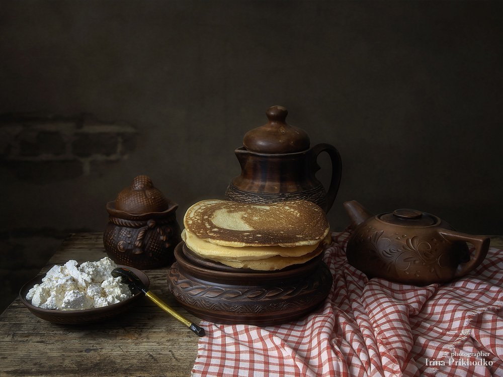 натюрморт, еда, творог, блины, деревенский, ретро, глиняная посуда, художественное фото, Ирина Приходько