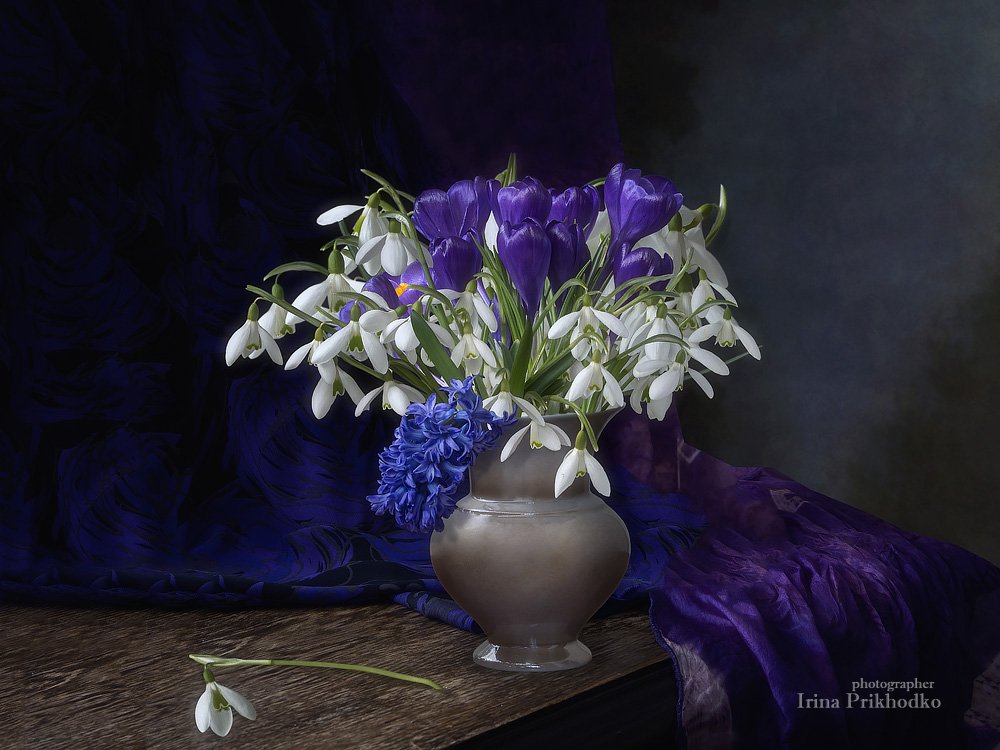 натюрморт, букеты, цветы, первоцветы, крокусы, галантусы, гиацинты, Ирина Приходько