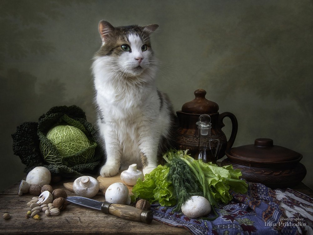 натюрморт, котонатюрморт, домашние животные, кошки, постановочная фотография, художественное фото, кот Лёва, овощи, Ирина Приходько