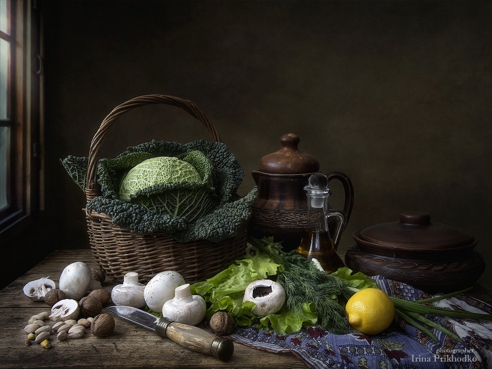 натюрморт, вегетарианство, овощи, кухонный стол, винтажный, савойская капуста, Ирина Приходько