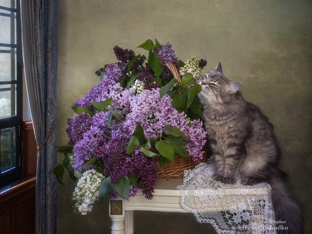натюрморт, весна, цветы, сирень, винтажный, букеты, кошка Масяня, питомцы, постановочное фото, Ирина Приходько