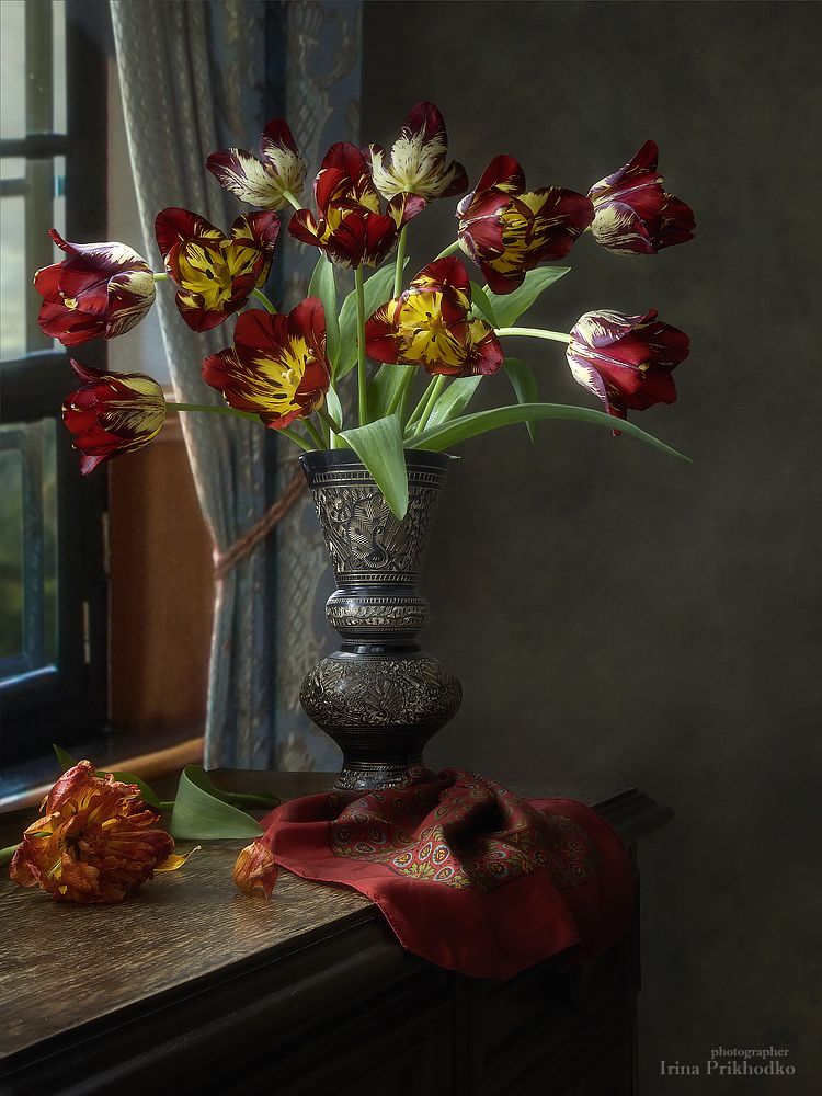 натюрморт, цветы, букеты, тюльпаны, винтажный, Ирина Приходько