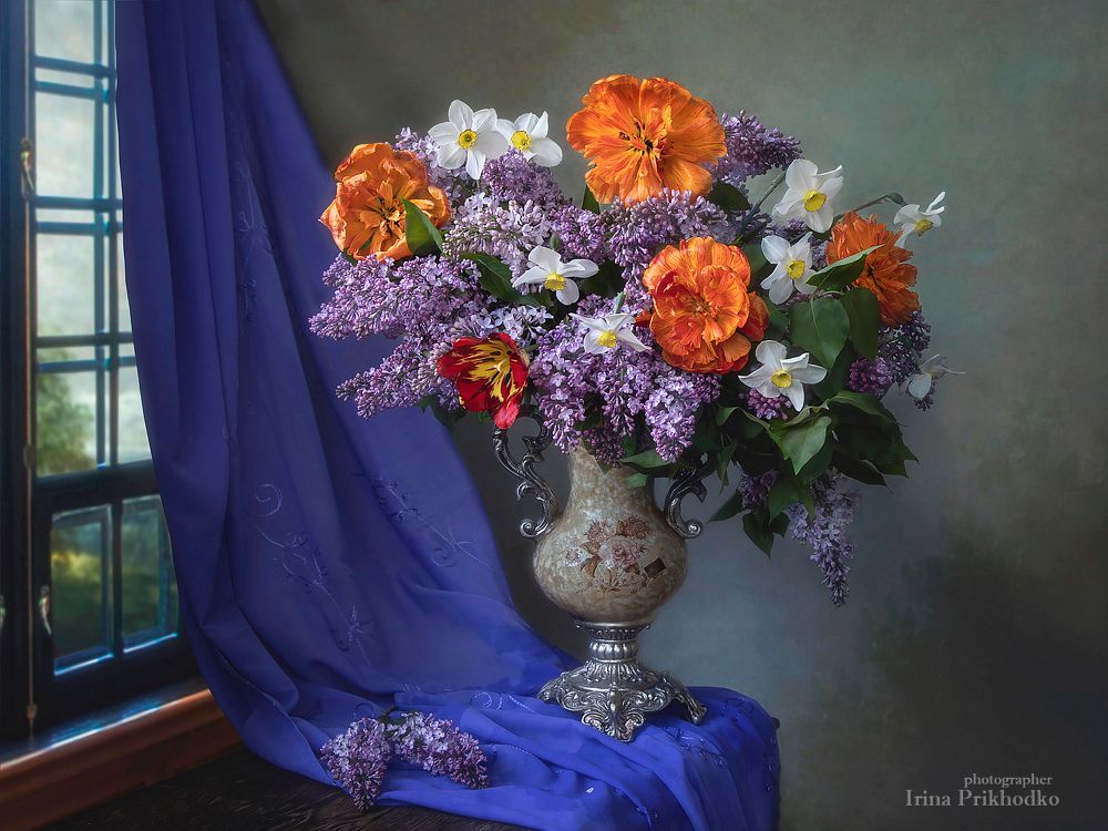 натюрморт, весна, букет, цветы, сирень, тюльпаны, нарциссы, Ирина Приходько