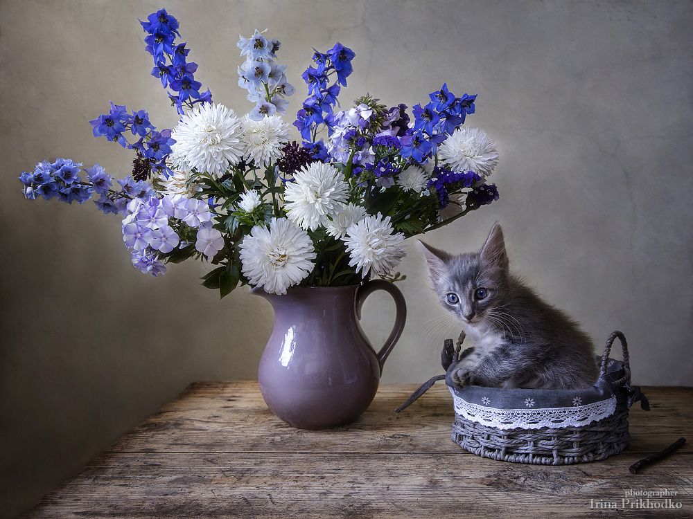 натюрморт, цветы, букеты, художественное фото, котенок, постановочное фото, Ирина Приходько