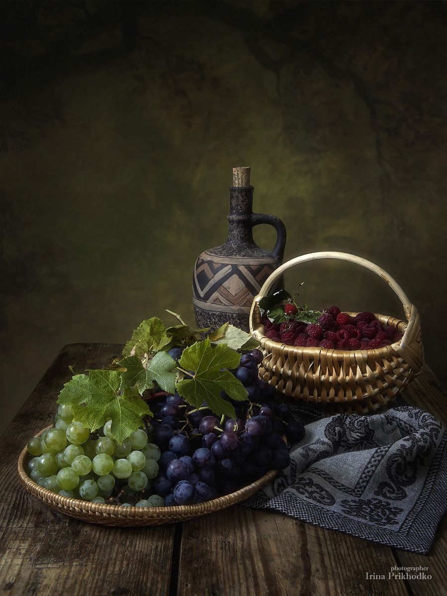 натюрморт, урожай, осень, ягоды, малина, виноград, Ирина Приходько
