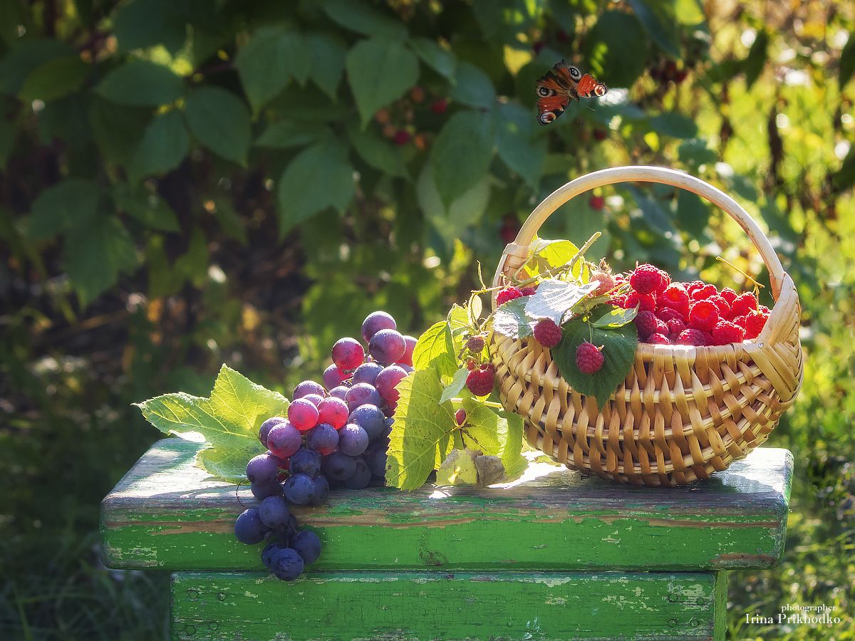 натюрморт, пленэр, сад, виноград, малина, осень, , Ирина Приходько