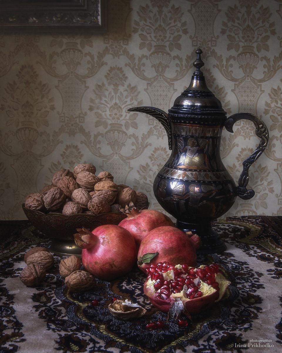 натюрморт, осень, урожай, орехи, гранаты., Ирина Приходько