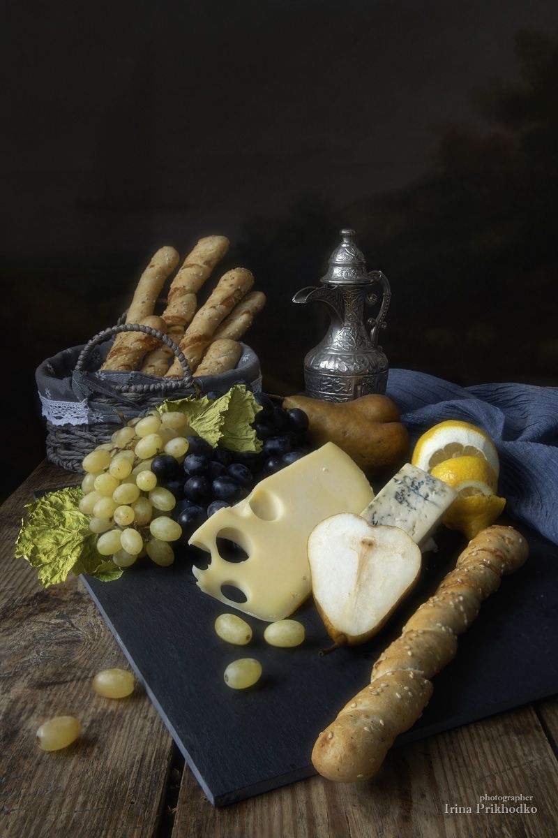 натюрморт, сыр, хлеб, фрукты, еда, Ирина Приходько