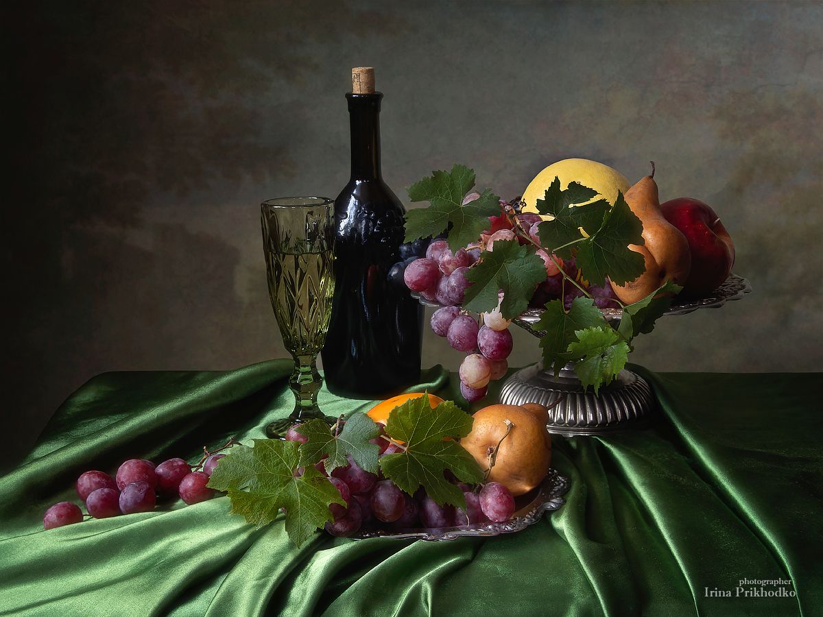 натюрморт, фрукты, вино, винтажный, Ирина Приходько