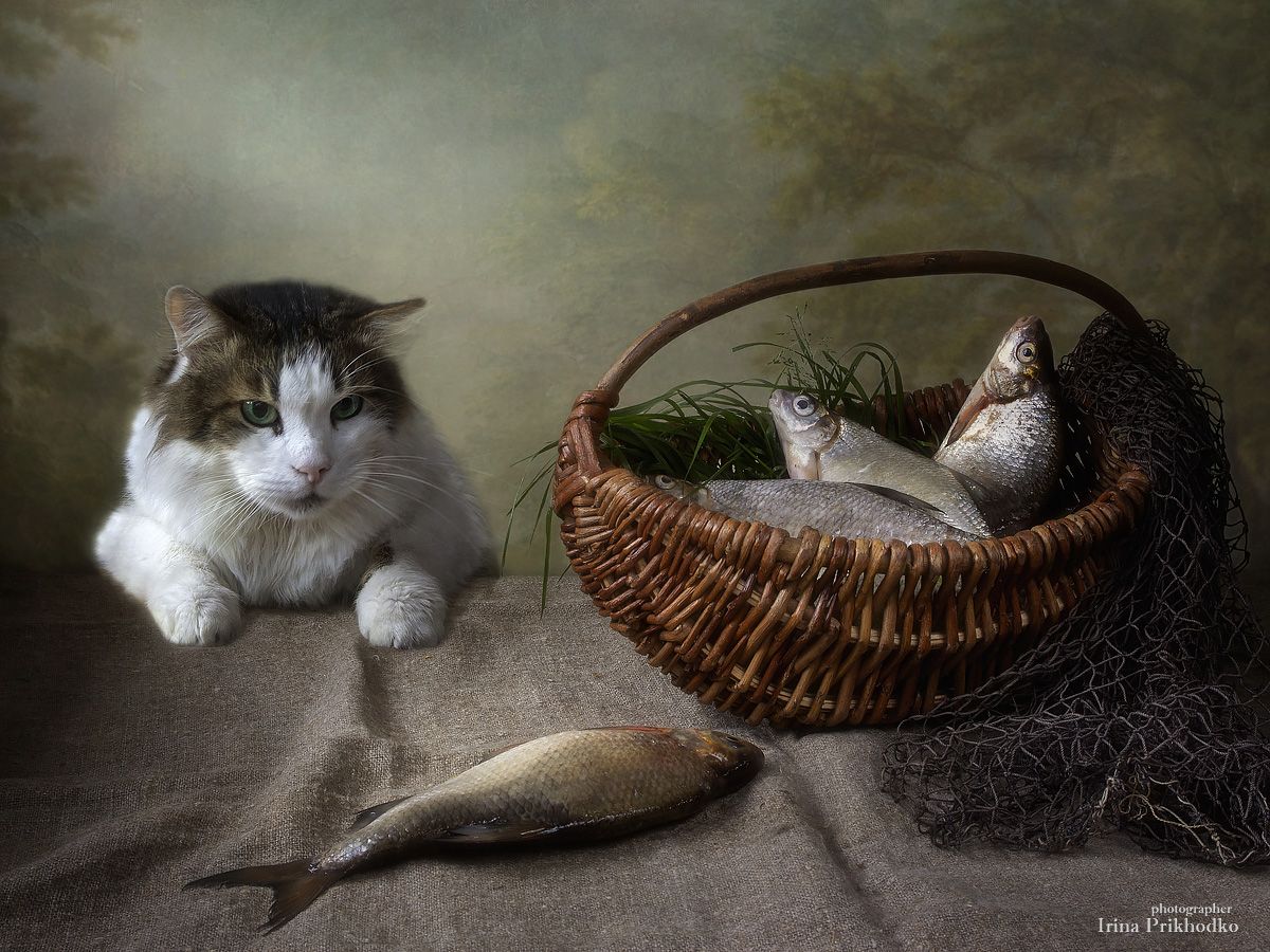 постановочное фото, животные, домашние животные, питомцы, натюрморт, рыба, улов, кот Лёва, Ирина Приходько