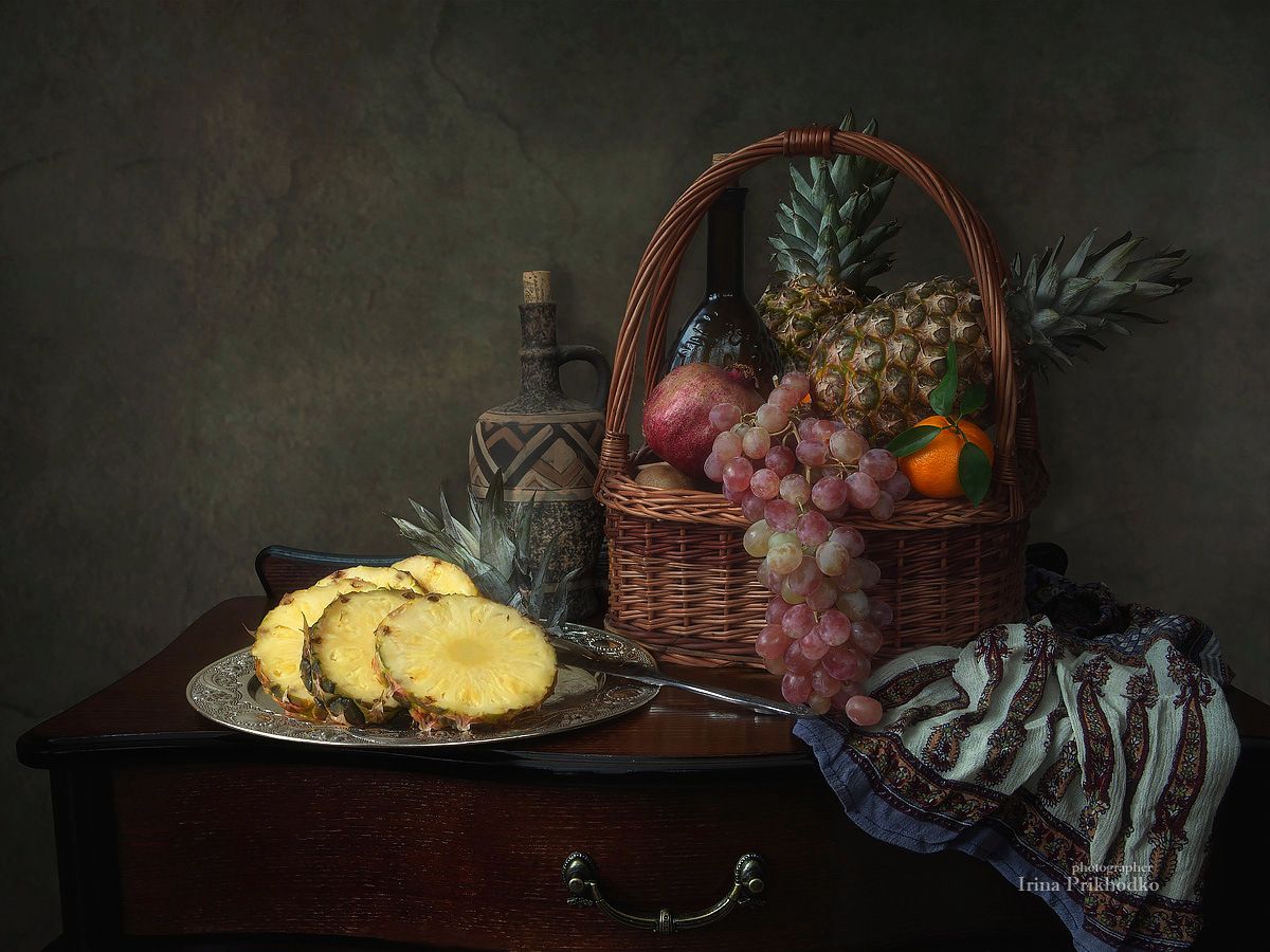 натюрморт, ананасы, фрукты, вино, Ирина Приходько