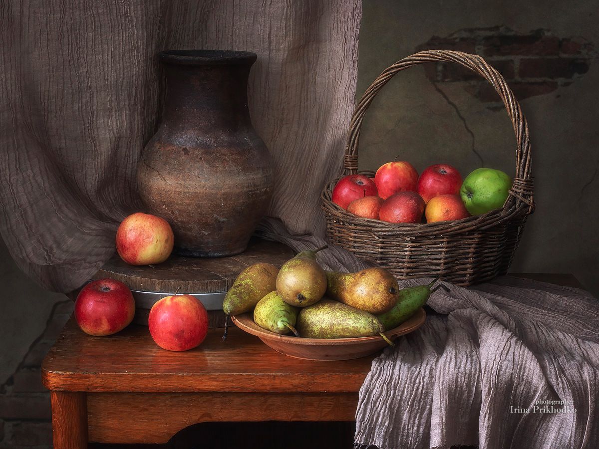 натюрморт, яблоки, груши, деревенский, фрукты, Ирина Приходько