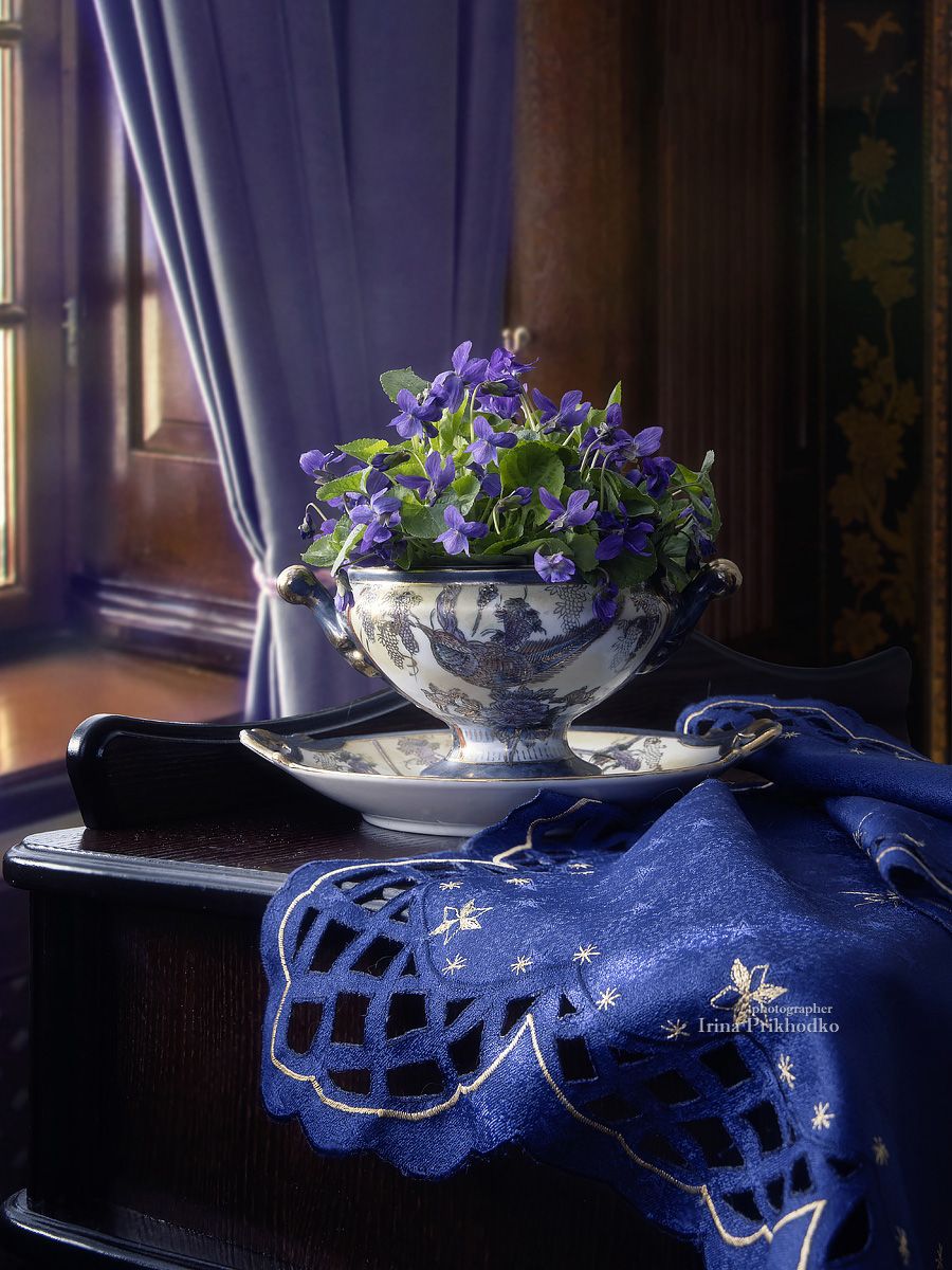 натюрморт, букет, цветы, весна, фиалки, интерьер, Приходько Ирина