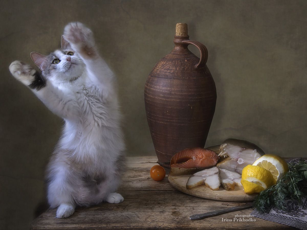 постановочное фото, котики, животные, домашние питомцы, копченая рыба, Приходько Ирина