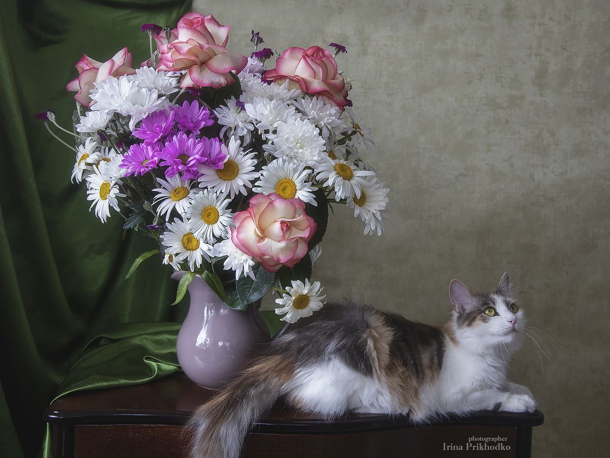натюрморт, цветы, кошка, букеты. лето, котонатюрморт, Приходько Ирина