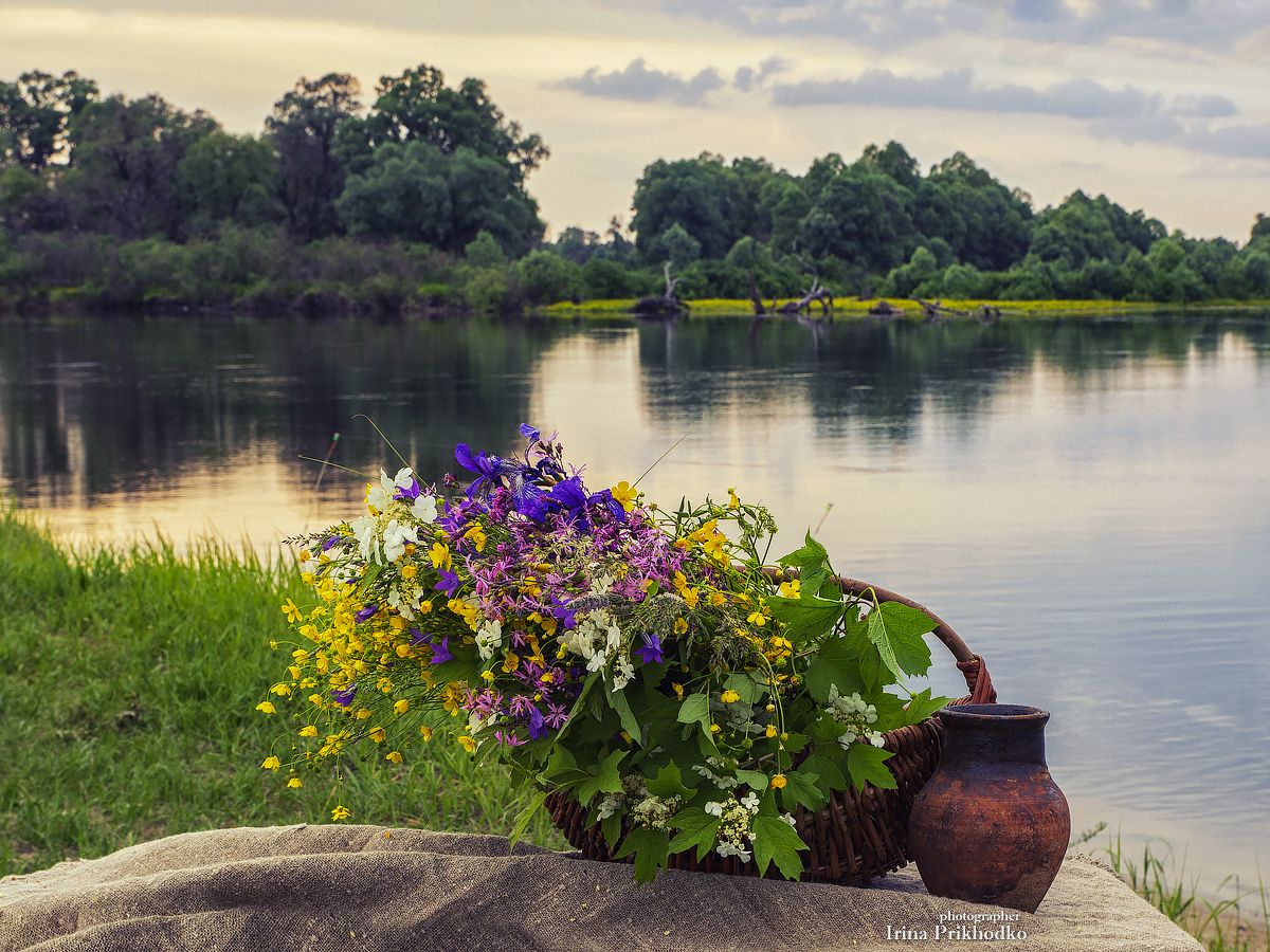 натюрморт, пейзаж, пленэр, цветы, река, лето, Приходько Ирина
