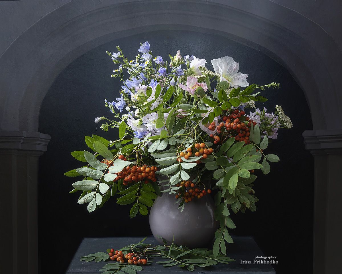 натюрморт, настроение, цветы, рябина, букет, Приходько Ирина
