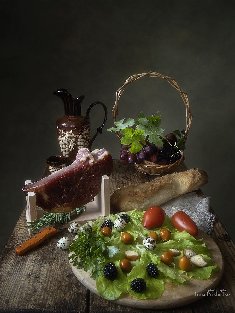 натюрморт, хамон, перепелиные яйца, фрукты, фотокартина, еда, Приходько Ирина