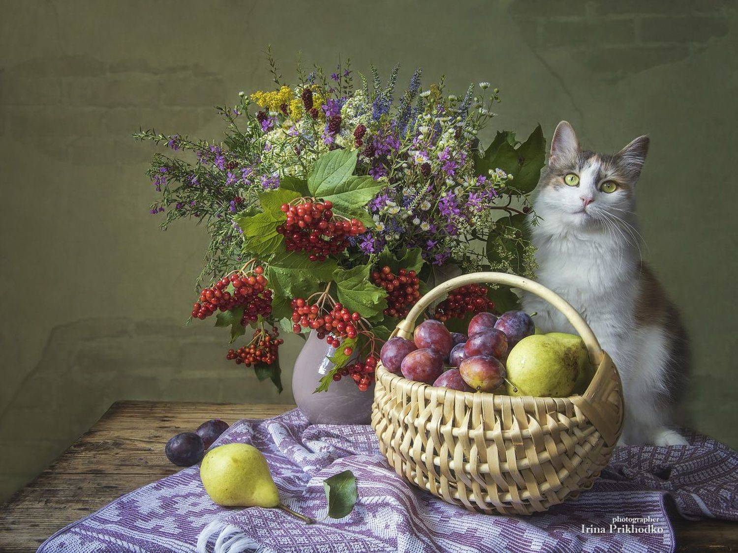 натюрмортлетобукетыфруктыкошкакалина