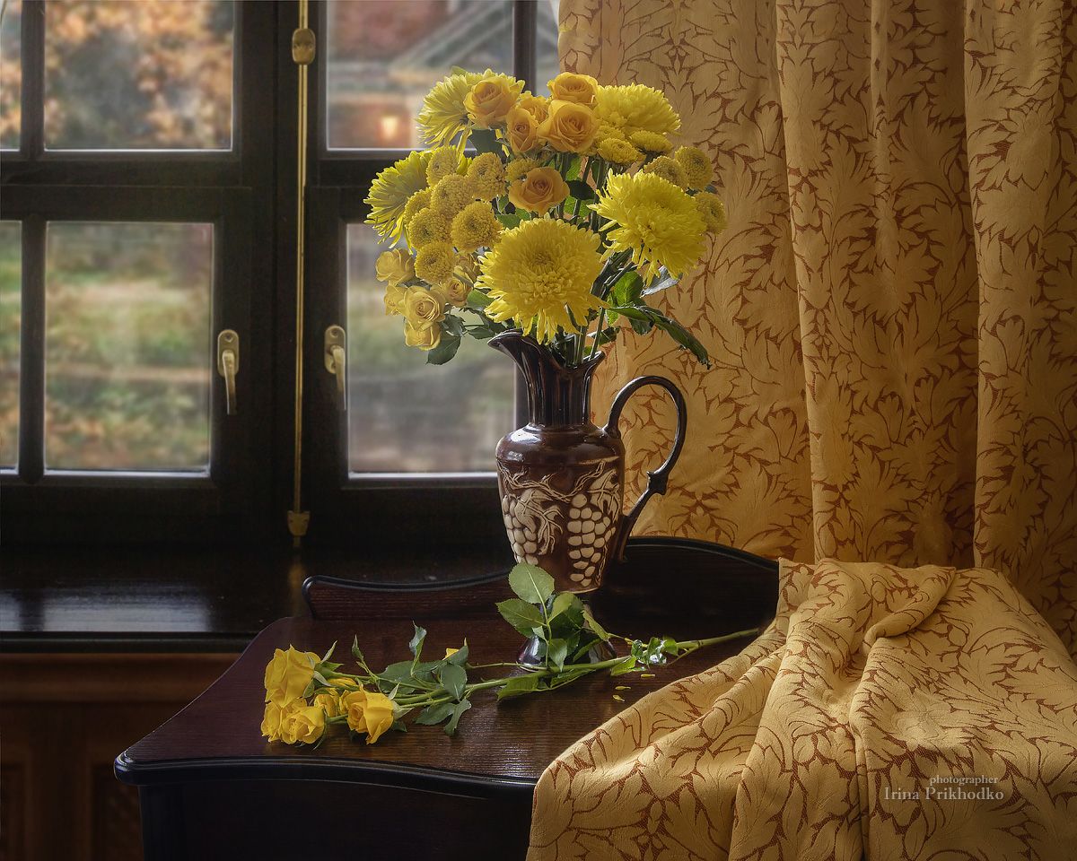 натюрморт, цветы, желтые цветы, букеты, интерьер, осень, Приходько Ирина
