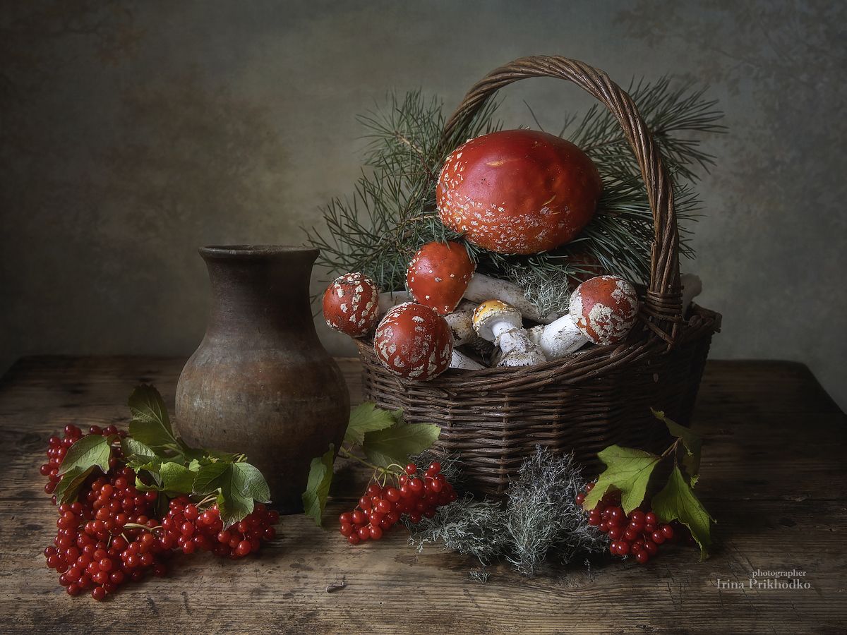 натюрморт, деревенский, калина, мухоморы, грибы,, Приходько Ирина