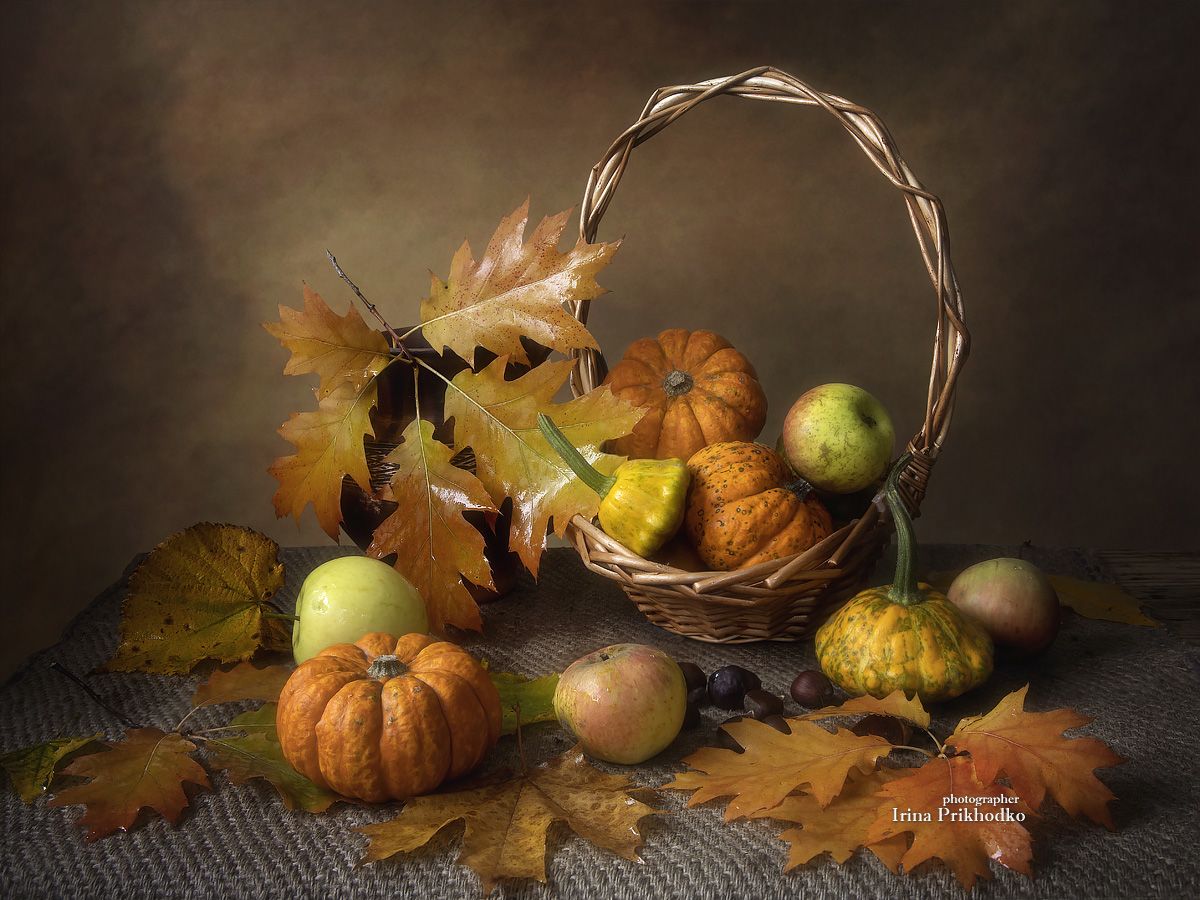 натюрморт, осень, урожай, тыквы, осенние листья, Приходько Ирина