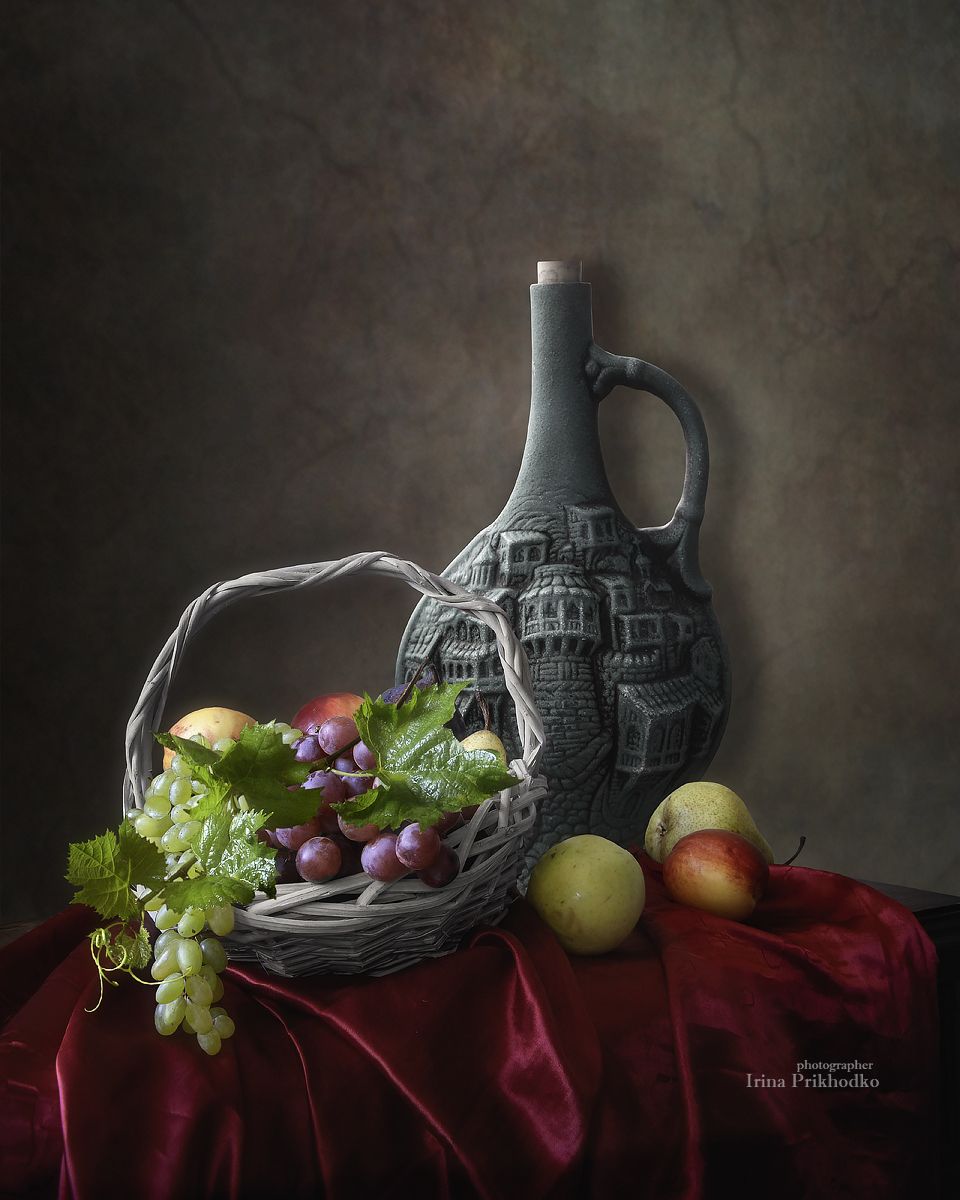 натюрморт, фрукты, вино, винтажный, фотокартина, Приходько Ирина