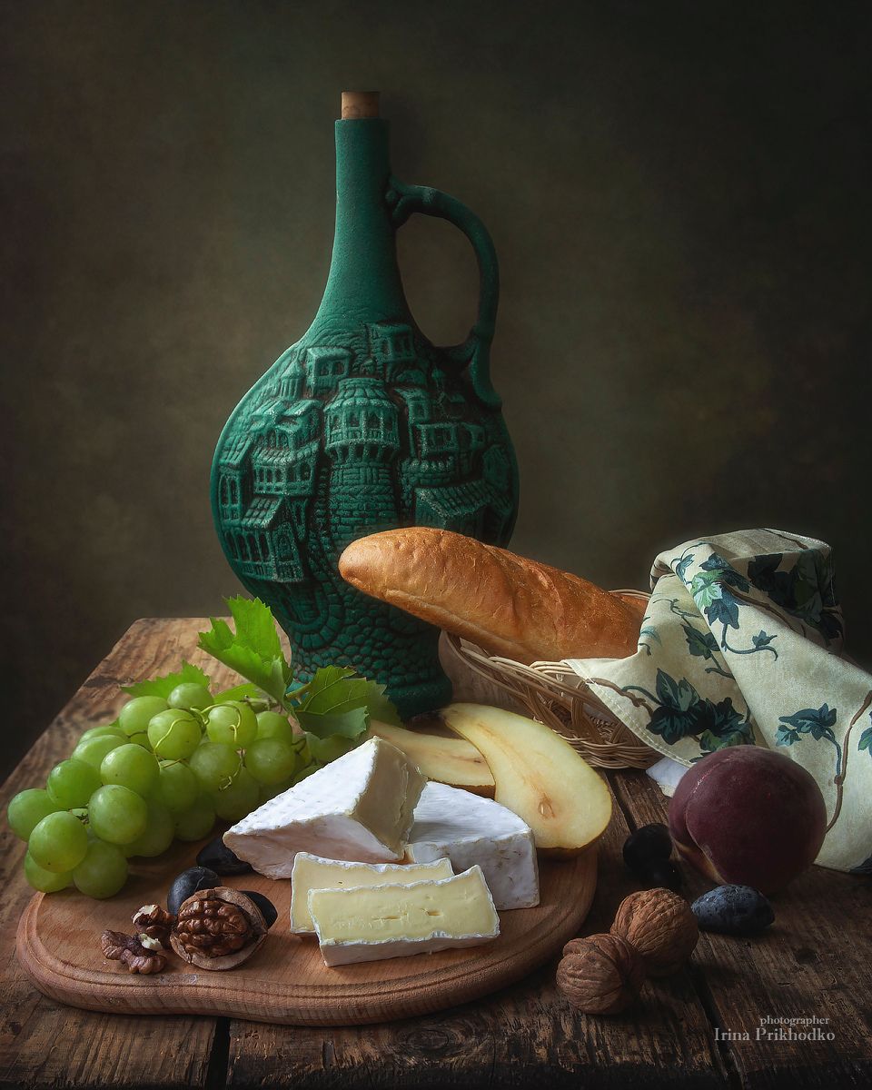 натюрморт, сыр еда, стол, фрукты, вино, Приходько Ирина