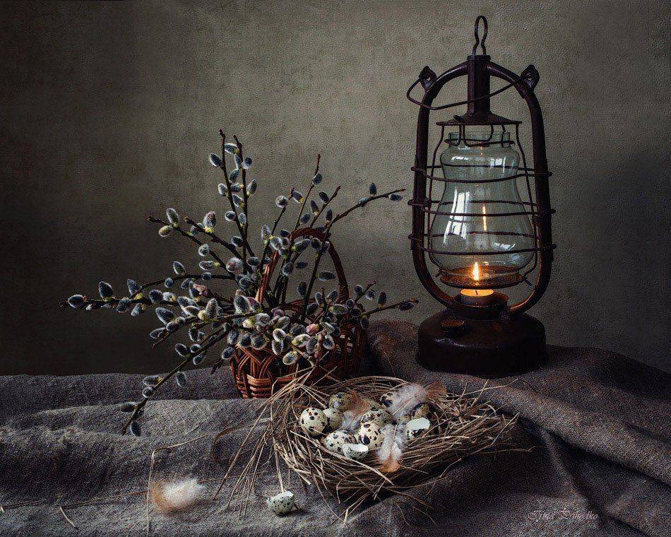 фото натюрмортверба. корзинафонарьперепелиные яйца